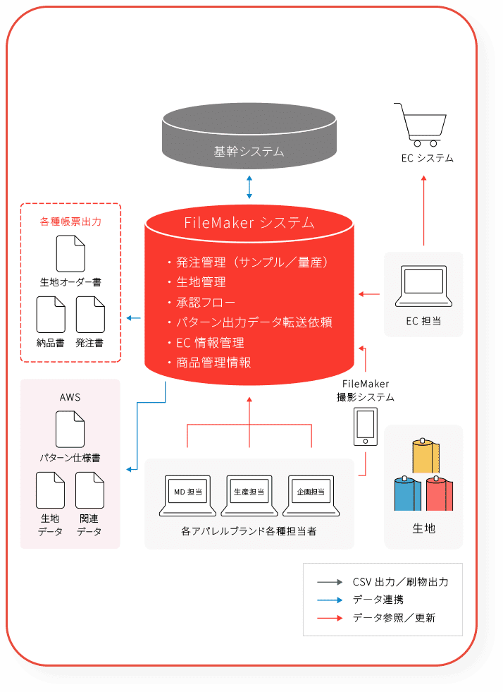 ブランドごとに異なっていた発注書をシステムに統一してデジタル管理することで、関連部署とのリアルタイムな共有を可能にし、過去の発注書を簡単に検索・管理でき、進捗状況をシステム上で可視化し、確認作業にかかる時間の短縮に成功。